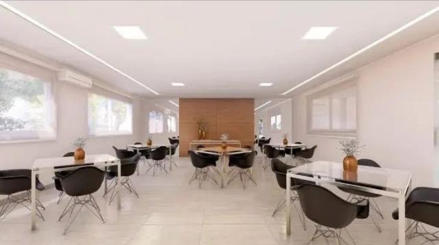 Piscinas, playground infantil, espaço pet, salão de festas e quiosque.