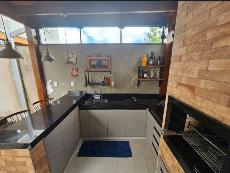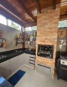 Área gourmet com churrasqueira e armários